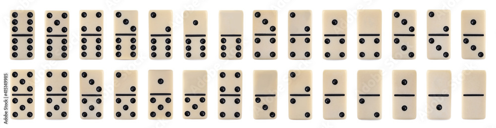 Collection of classic domino tiles on white background, banner design