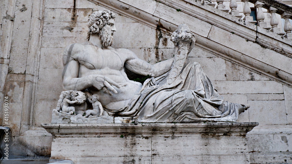 Piazza del Campidoglio - Statue del Tevere in Rome, Italy