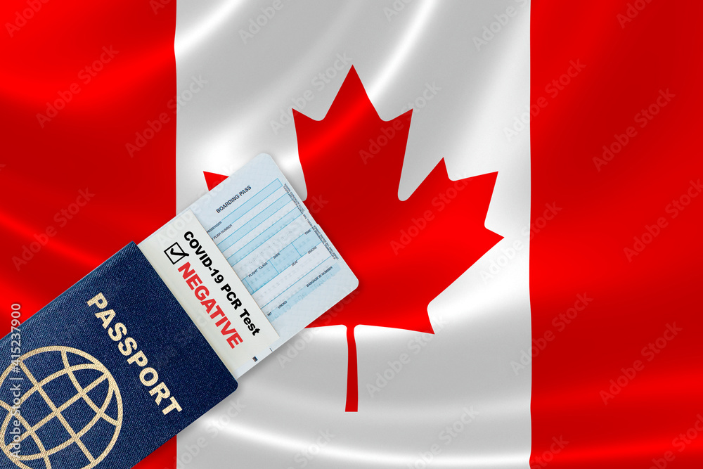 Travel passport, boarding pass and Proof of COVID-19 negative test to Canada
