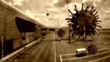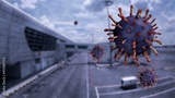 3D illustration. Flu coronavirus floating on air at airport. Pandemic Covid 19