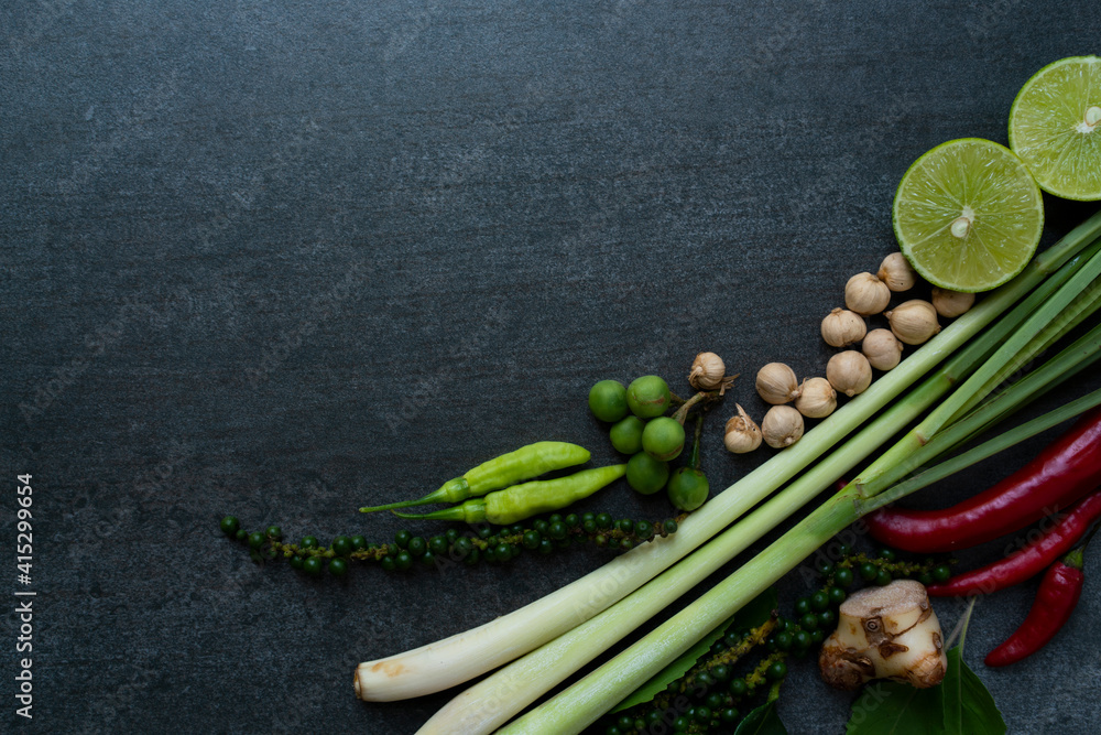 Thai food ingredients, vegetable and spicy taste, Thai food and healthy concept