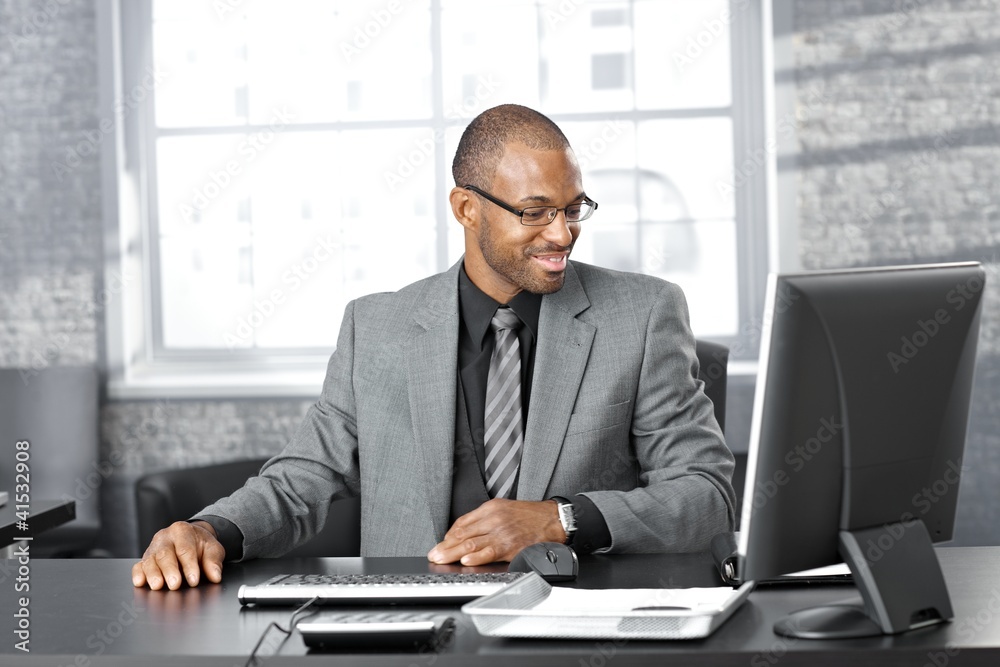 Happy businessman at desk