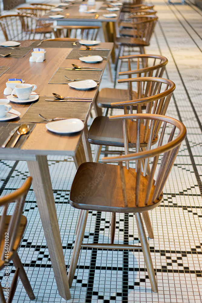 Table setting in a restaurant for buffet