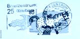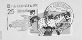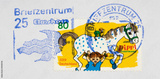 briefmarke stampt gestempelt used frankiert cancel elmshorn blau stempel blue pippi langstrumpf horse pferd kind child mädchen girl monkey affe 80 gelb yellow