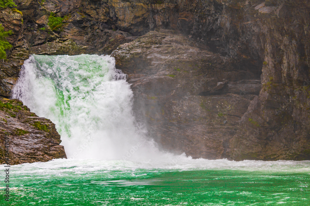 Beautiful Høljafossen waterfall turquoise water Utladalen Norway most beautiful landscapes.