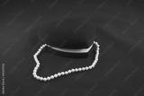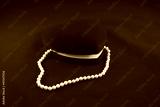 Cofanetto cuore rosso e collana di perle su fondo rosso