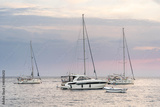 Boats and yachts on adriatic sea in Komiza on vis island in Croatia sunset