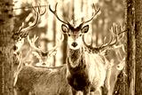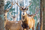 Red deer in winter forest. wildlife, Protection of Nature. Raising deer in their natural environment.