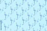 Trendy Summer pattern made with pink flamingo on bright light blue background
