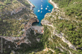 Aerial drone shot of iconic Stiniva cove beach of Adriatic sea on Vis Island in Croatia summer