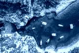 Aerial overhead drone shot of Stiniva covert cove beach in Adriatic sea on Vis Island in Croatia in summer