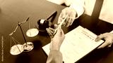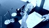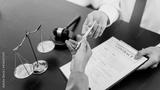 Labor law concept. Lawyer signing legal document with Judges gavel .