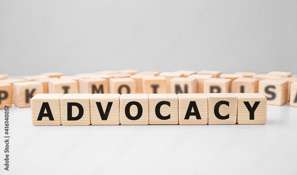 Word ADVOCACY made with wood building blocks