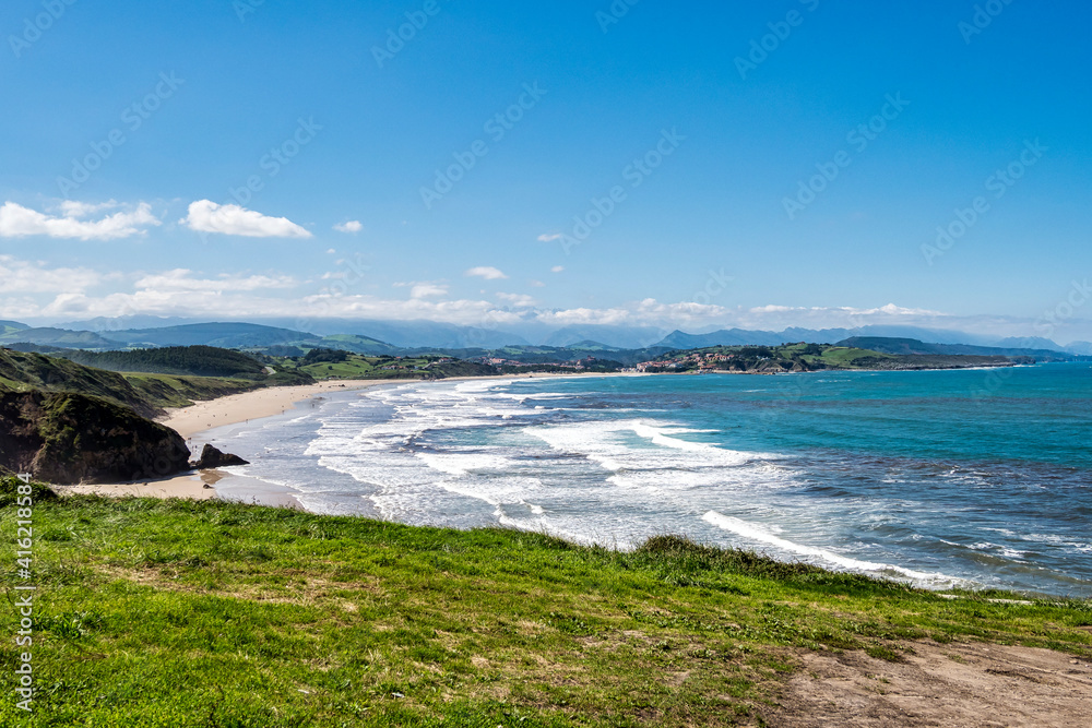 Beautiful landscape with beach in San Vincente de la Barquera in Spain. Bay of Biscay.