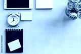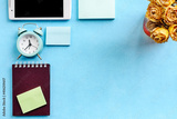 Top view of an office desk with stationery. Mock up