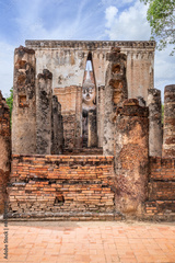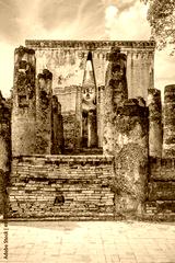 Famous big Buddha statue image named Phra Achana situated in ruined chapel at Wat Si Chum temple, Sukhothai Historical Park, Thailand