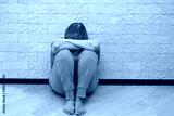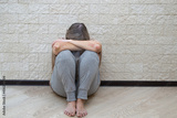 Senior woman with depression stress sad sitting on the floor. The concept of psychological health, emotional anxiety, panic attack, menopause, migraine. The concept of sadness, loneliness, old age.