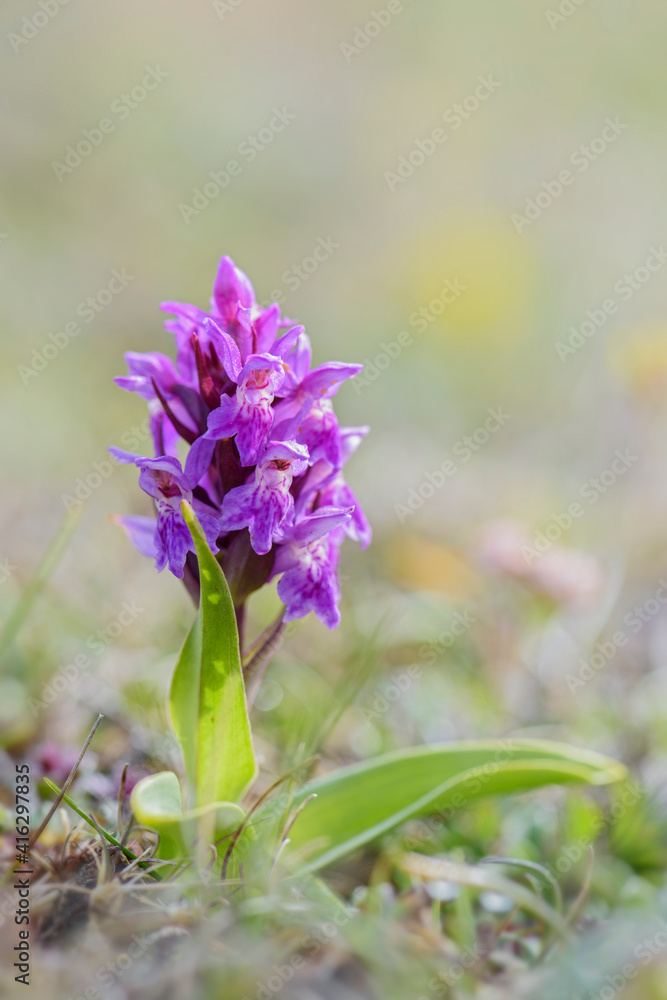 Northern Marsh-orchid - Dactylorhiza purpurella, beautiful colored orchid from North European meadows and marshes, Shetlands, Scotland, United Kingdome.