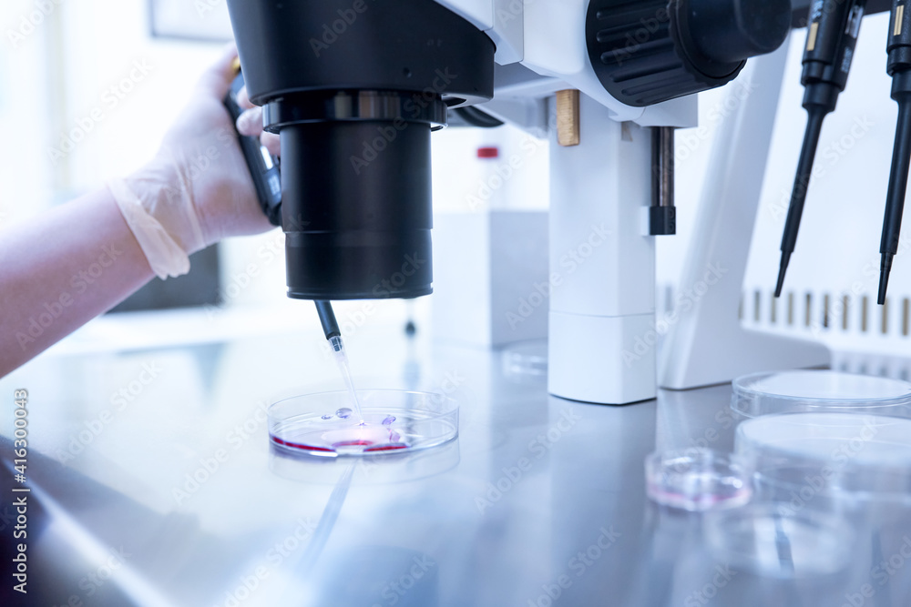 Equipment on laboratory of Fertilization, IVF. Microscope of reproductive medicine clinic fertilizing egg outside female body. Disease laboratory research