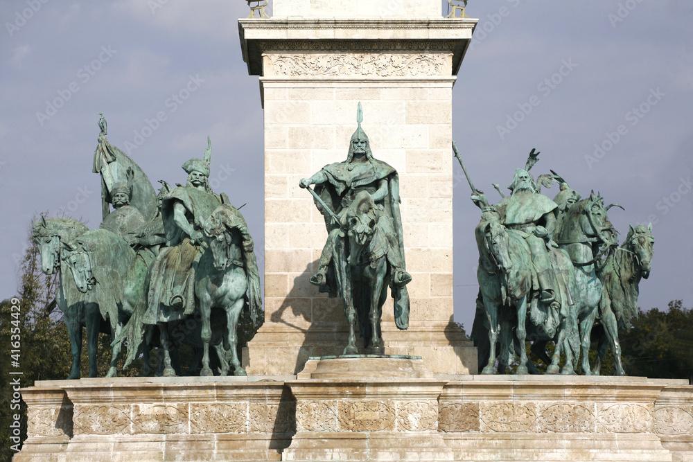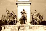 Equestrian statues of Seven Hungarian Chieftains Leaders on Heroes Square Budapest Hungary