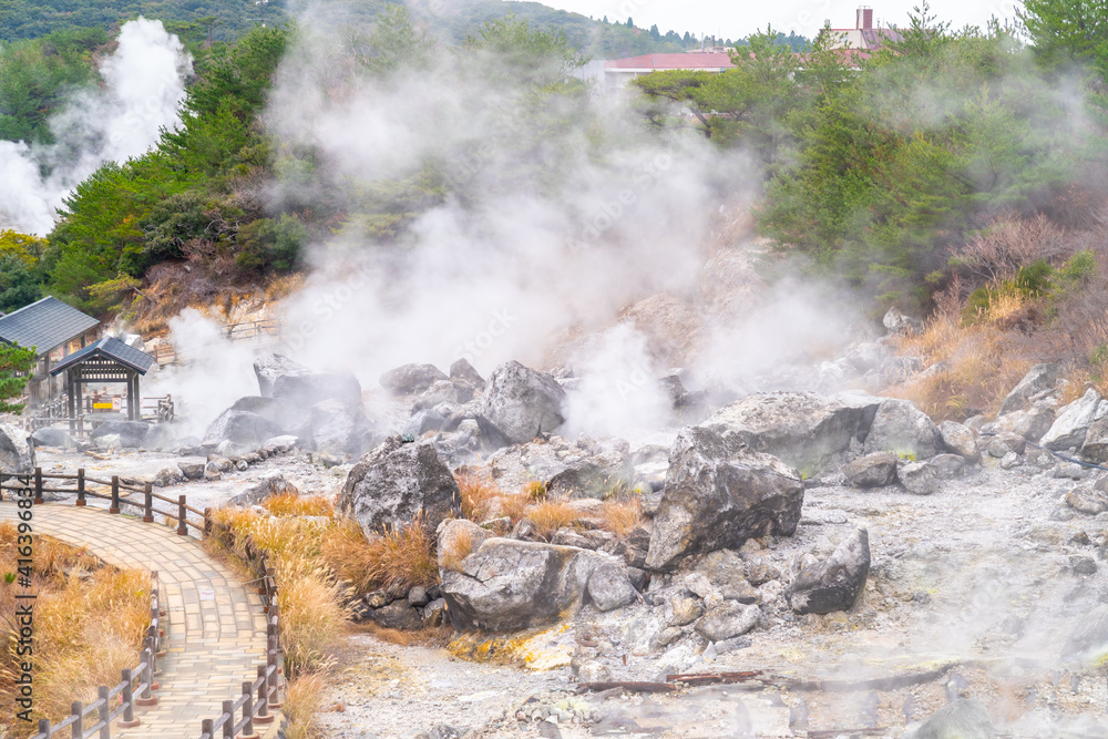 日本にある長崎県の観光名所「雲仙地獄」と「雲仙温泉」の写真