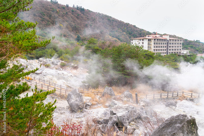 日本にある長崎県の観光名所「雲仙地獄」と「雲仙温泉」の写真