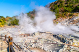 日本にある長崎県の観光名所「雲仙地獄」と「雲仙温泉」の写真