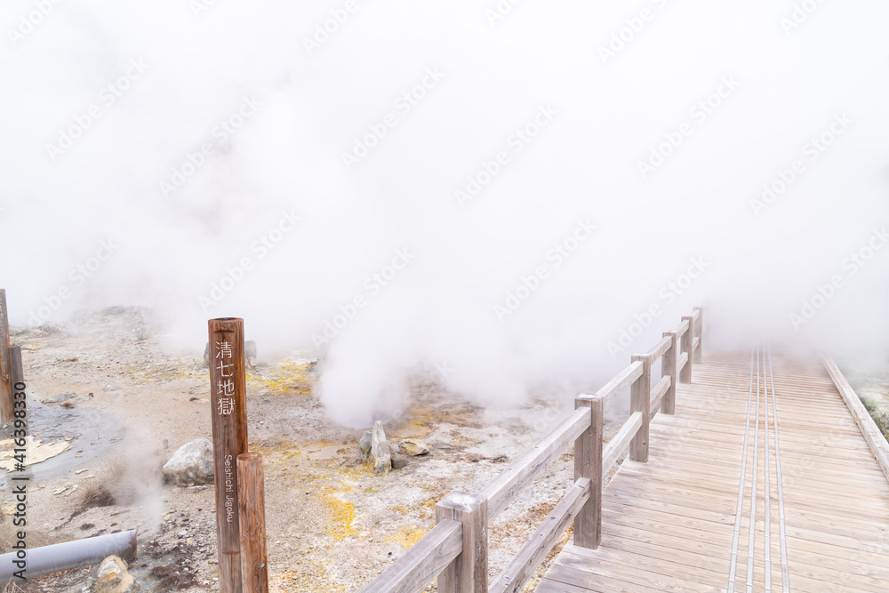 日本にある長崎県の観光名所「雲仙地獄」と「雲仙温泉」の写真