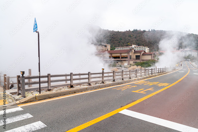 日本にある長崎県の観光名所「雲仙地獄」と「雲仙温泉」の写真