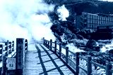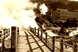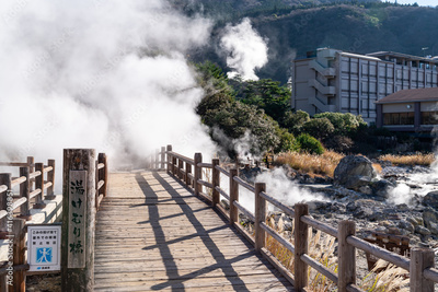 日本にある長崎県の観光名所「雲仙地獄」と「雲仙温泉」の写真