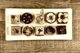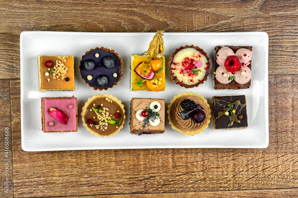 Many various cakes on white plate