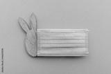 Easter springtime coronavirus background. Protective face mask with easter rabbit