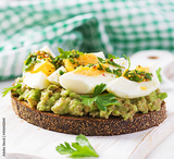 Vegetarian breakfast. Sandwich with avocado puree and boiled eggs. Healthy breakfast or lunch.
