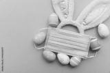 Easter springtime coronavirus background. Protective face mask with easter decorations