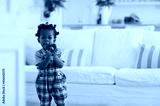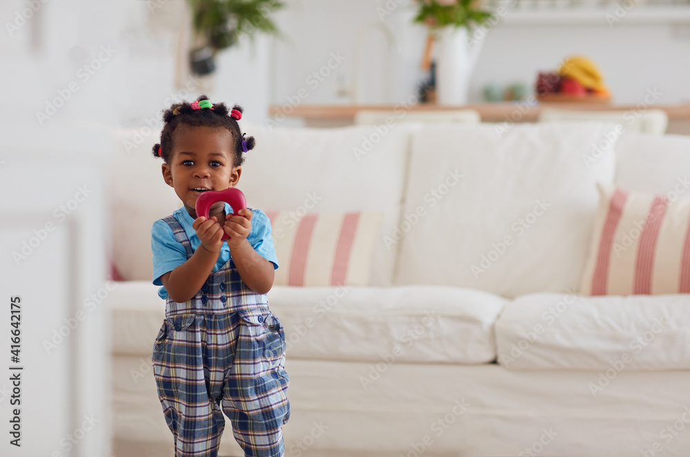 cute african american baby girl playing toys at home