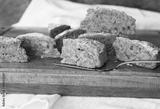 Sliced pieces of homemade pumpkin pie lie on a kitchen cutting board with a napkin. Homemade natural food.