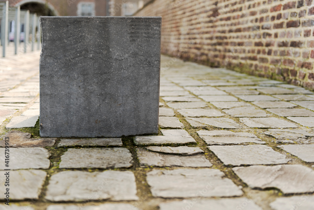 Concrete block on a pedestrian road to restrict vehicle traffic