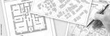 Updating public cadastral digital databases and information about land registry - concept image with an imaginary cadastral map of territory with buildings, roads and land parcel