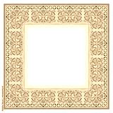 Old carved stone frame, on white background for easy selection, taken from the medieval frieze of the facade of Pisa Cathedral (Italy - Tuscany - Pisa city)