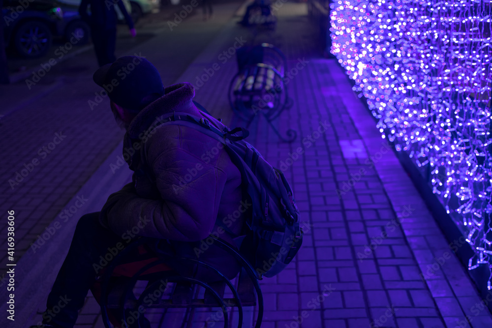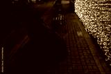 twinkling lights and the man on the bench