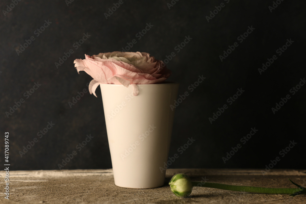 Still life con ranuncoli. Fiori recisi dalle delicate tonalità rosa pallido.