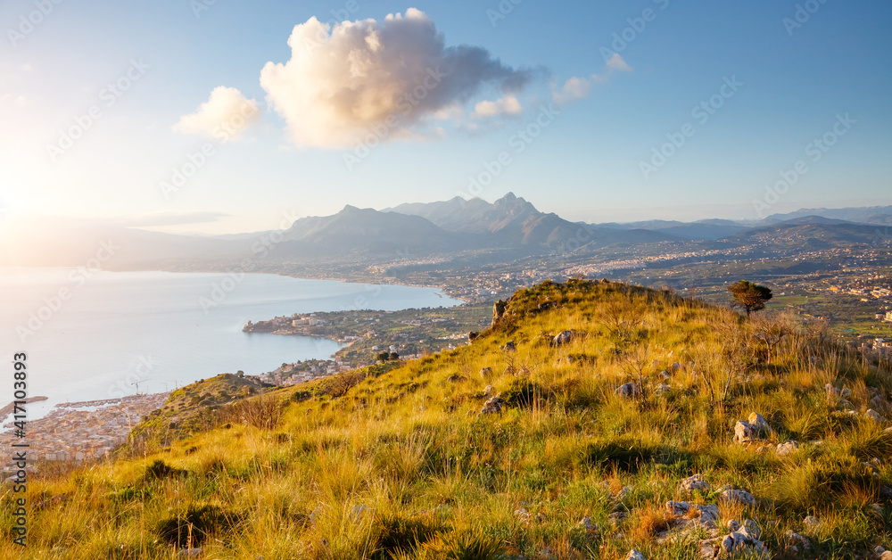 Fantastic view of the azure sea on a sunny day. Location place Island Sicily, Zafferano cape, Palermo sity, Italy, Europe.