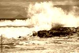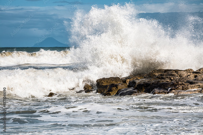 Amazing seascape on a sunny day and strong stormy waves. Location place Sicily, Italy, Europe.