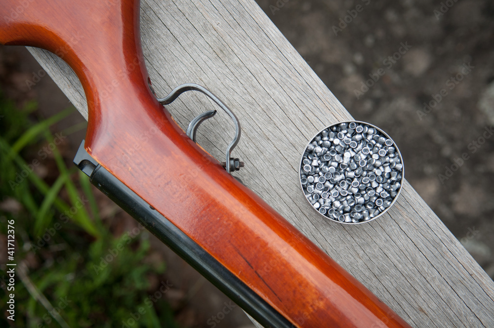 Ein Luftgewehr liegt auf einem Holzgeländer