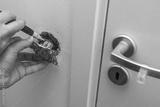 Сlose up view of male checks voltage in the electrical outlet. Building construction elements concept. Sweden.