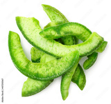 Pieces of dry pomelo close-up on a white. Top view.