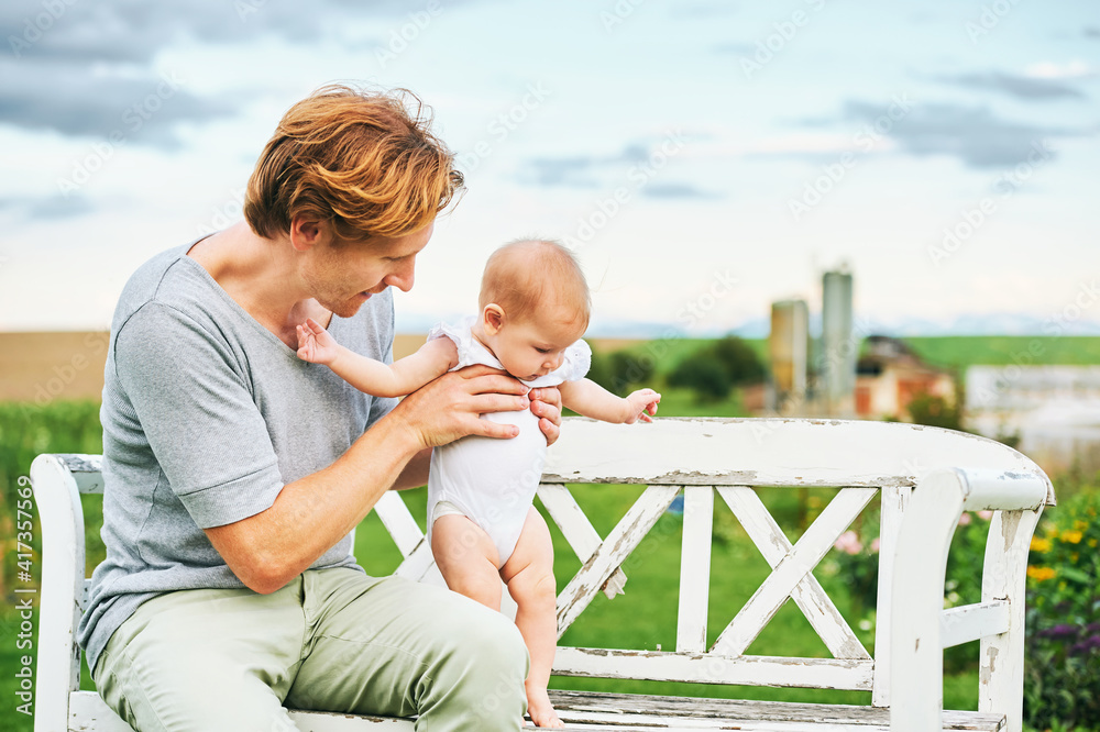Happy young father playing with baby girl in beautiful summer park