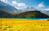 Beautiful alpine lake Champfer in beautiful summer day. Location place Silvaplana village, Swiss alps, Europe.
