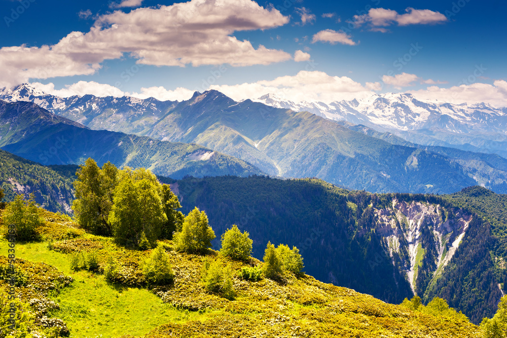 Splendid landscape in Val Gardena on a sunny day. Location place Dolomite, Italy, Europe.