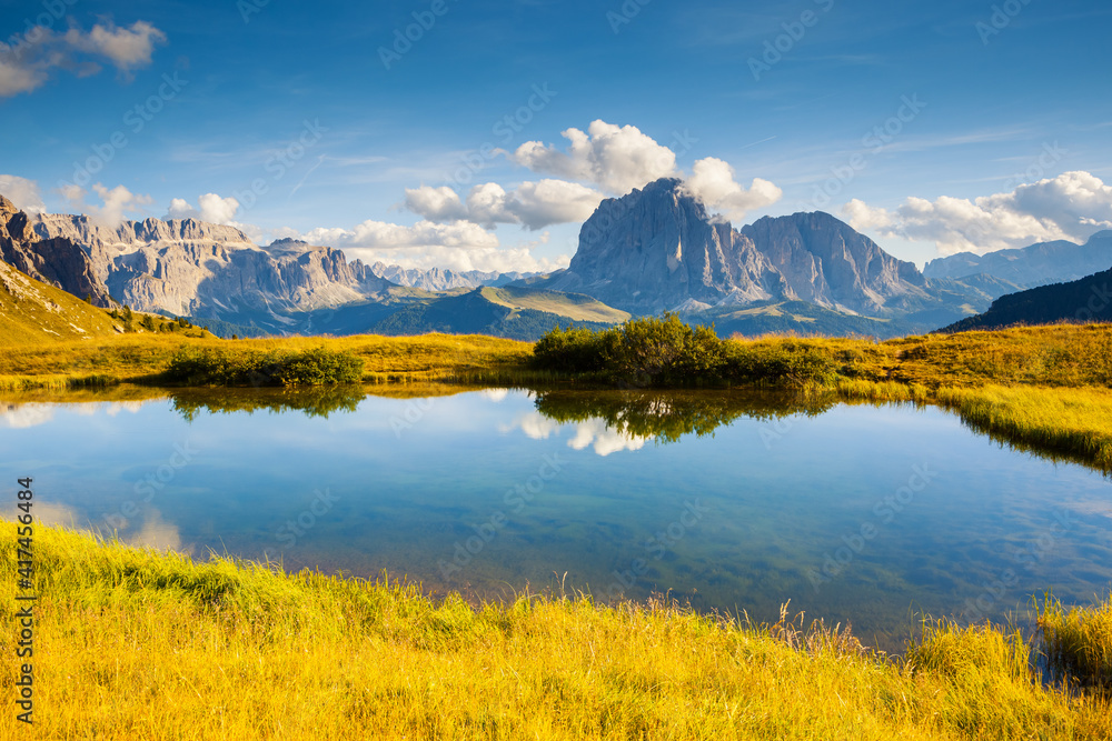 Splendid landscape in Val Gardena on a sunny day. Location place Dolomite, Italy, Europe.